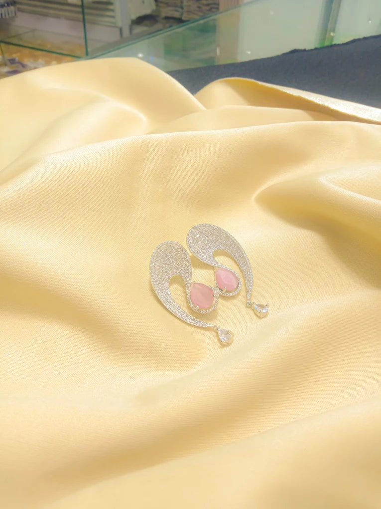 American DIAMOND Ethnic Traditional Rhodium plated EARRINGS Cz Jewellery SET Wedding And Party Wear Indian Bridal For Women And Girl