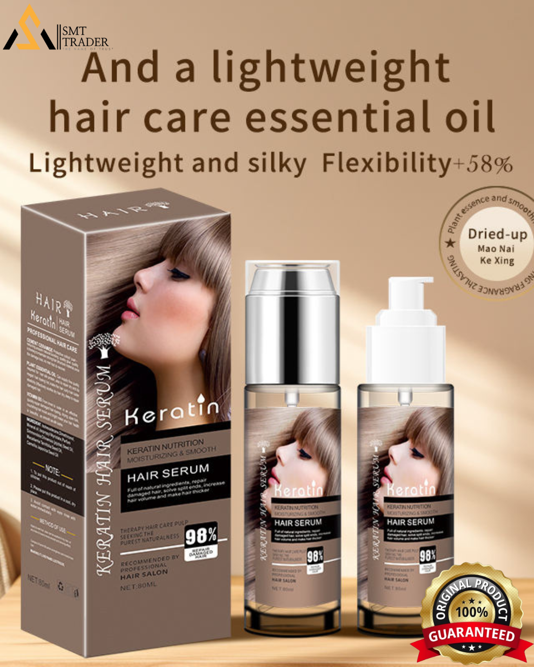 Suitable for all hair types, our Keratin Hair Serum is a must-have addition to your hair care routine. Say goodbye to dull, lifeless hair and hello to radiant, healthy-looking locks with our nourishing and smoothing serum.